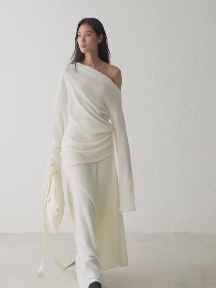 YUEXLIANG Simple curved multi-wear wool knit top